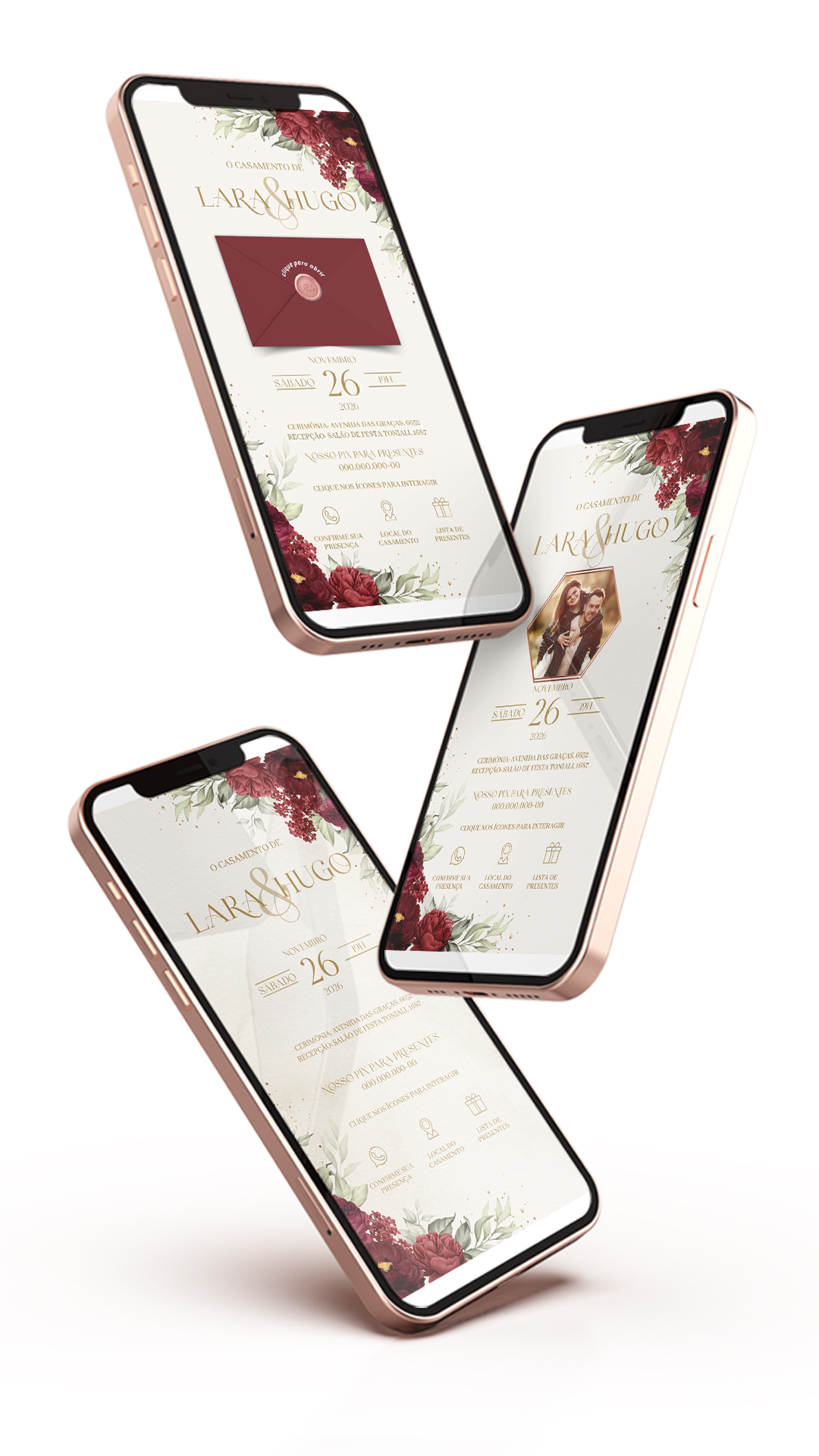 Somos a união perfeita entre convites reais e virtuais, proporcionando uma experiência digital única. Com mais de 1.600 convites digitais criados, desenvolvemos um formato que replica a emoção de receber um convite físico, apresentando um modelo 3D que simula essa experiência.